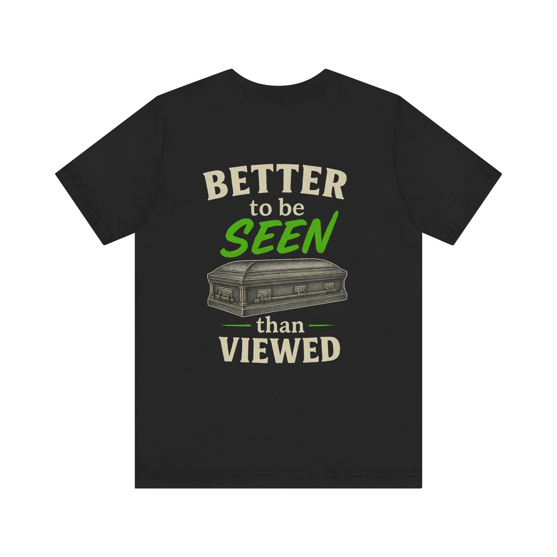How many times do we hear this? Introducing our "Better to be SEEN than viewed" T-shirt. Be seen now… the viewing can wait. Seen > Viewed. Simple math.
