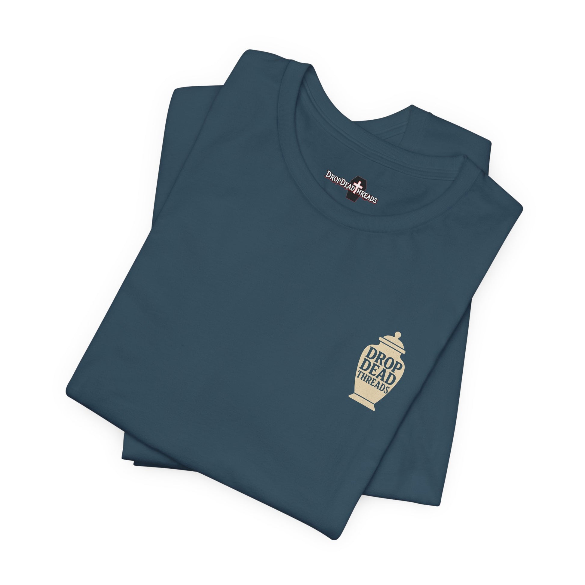 When it comes to style, you’ve gotta urn it. This distressed graphic tee serves up dark humor six feet under, perfect for morticians, goths, or anyone who loves a killer pun.